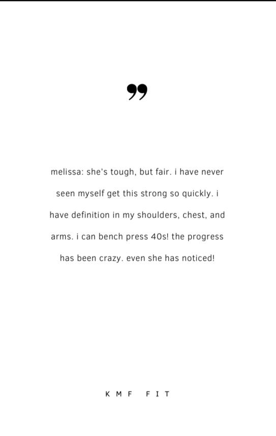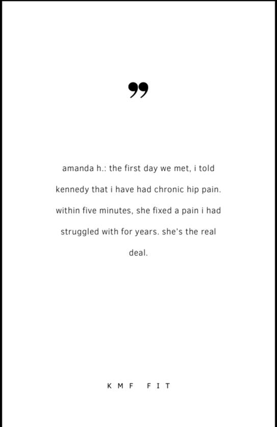 "I feel stronger, better, I have more energy! Look good, feel good! Working with Kennedy has been life changing."